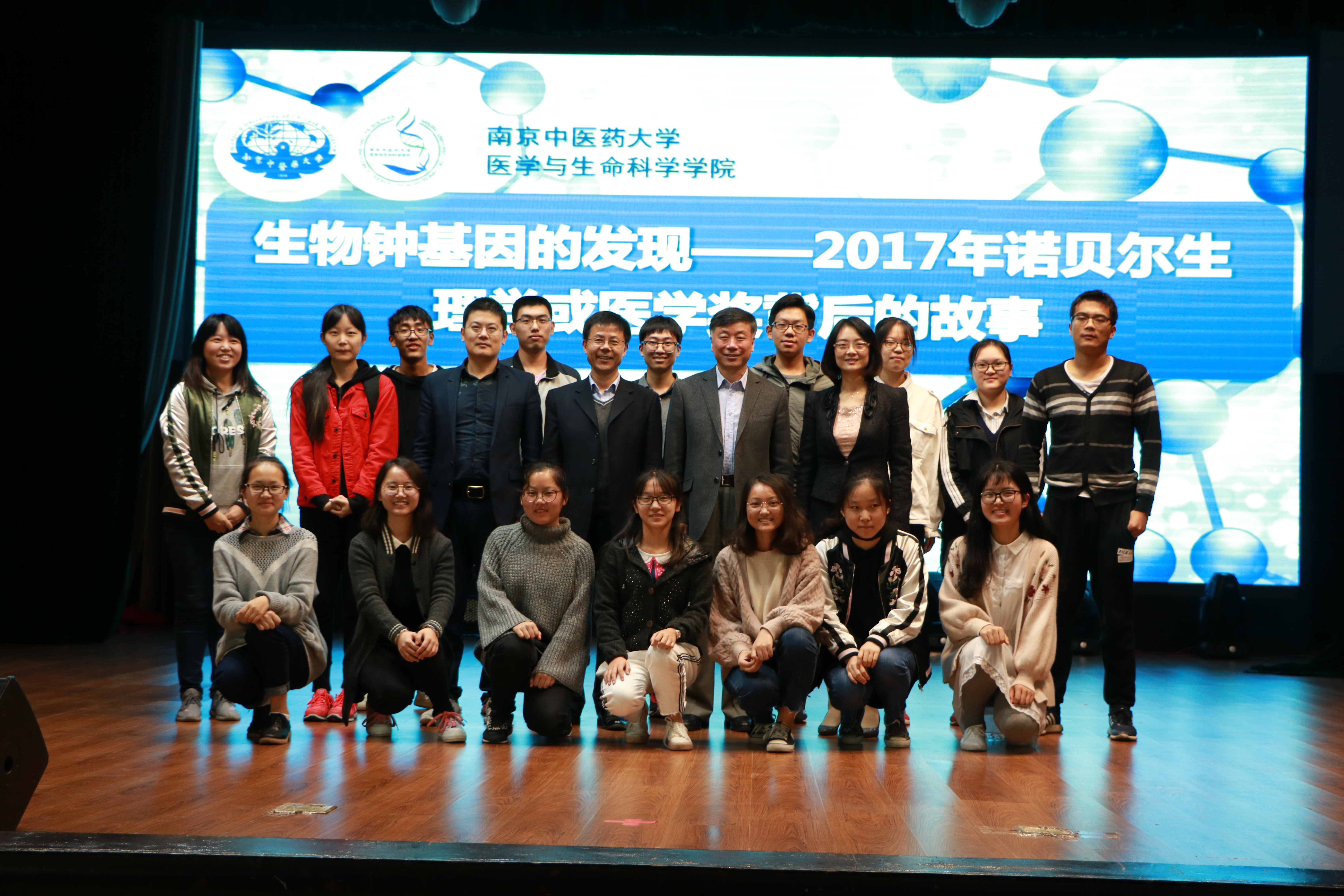 10月18日下午,医学与生命科学公司在老员工活动中心小剧场举办“近思讲坛”首场讲座“生物钟基因的发现----2017年诺贝尔生理学或医学奖背后的故事”。2017年诺奖生理学或医学奖获得者Michael Rosbash教授的员工----中科院上海药物研究俞强教授受邀主讲。公司党委杨羽书记主持,公司全体本科生聆听讲座。
