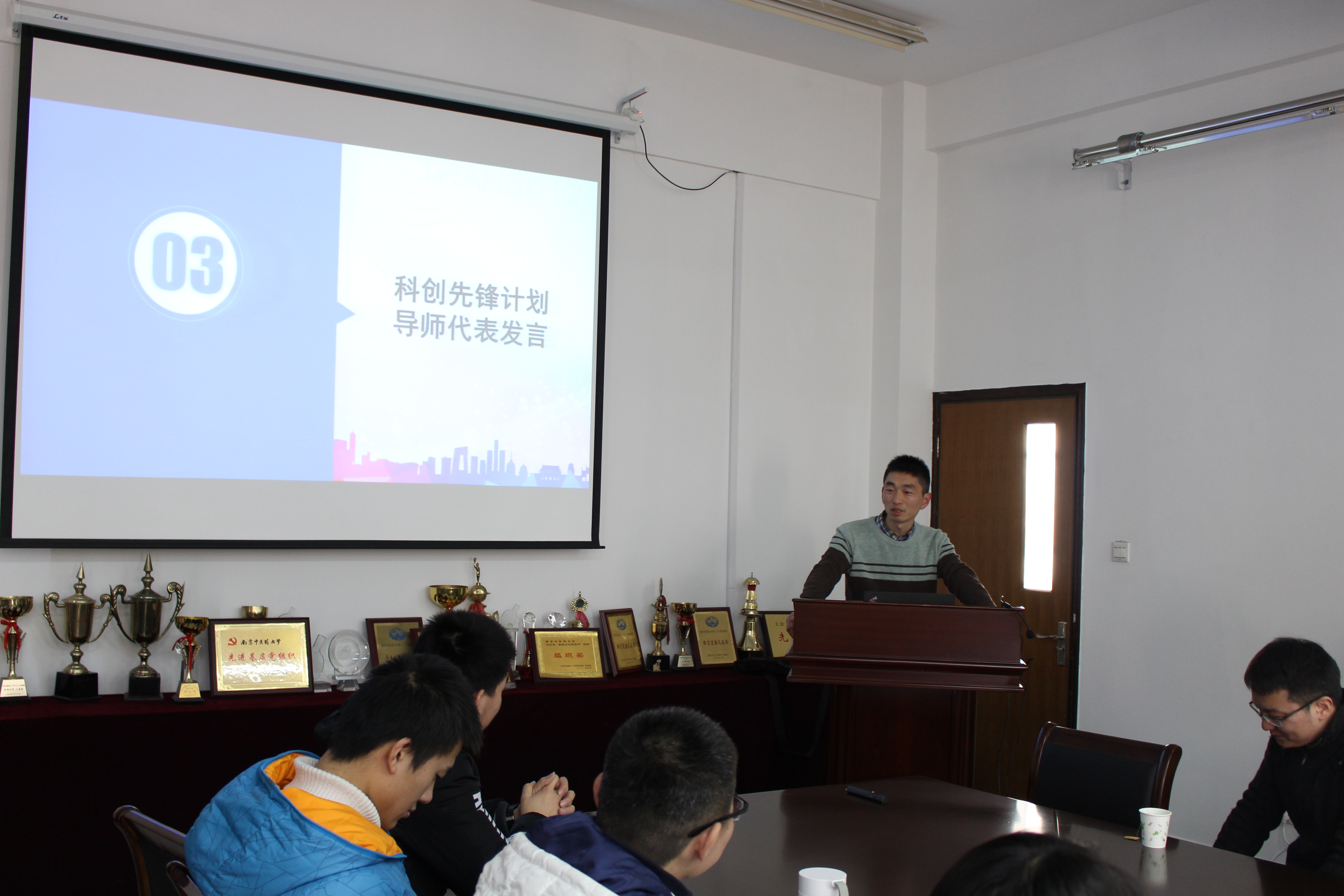科创先锋班班主任赵阳老师,随后就科创先锋项目运行一年来的基本情况、所取得的成绩以及尚存在的不足等内容向与会领导和导师做了汇报。