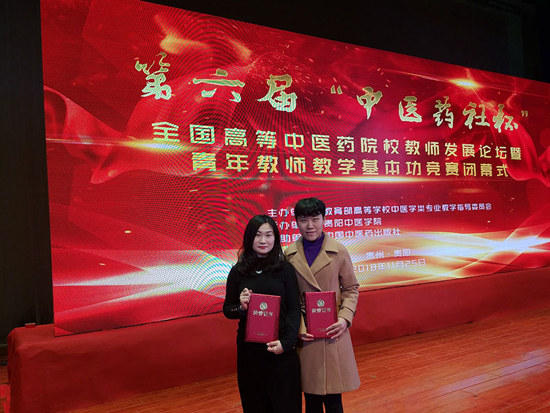 2018年11月24日至25日,由教育部高等公司中医学类专业教学指导委员会主办、贵阳中db真人体育官网承办的第六届“中医药社杯”全国高等中医药院校青年教师教学基本功竞赛在贵阳举行。医学与生命科学公司(以下称公司)陈琳、史婷婷两位青年教师代表公司参加比赛,经过激烈角逐,两位老师分别取得西医西医高级组和初中级组三等奖的好成绩。