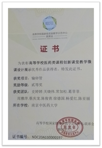 2021年7月26-28日,由高等公司国家级实验教学示范中心联席会主办的“第十三届全国医学类实验教学研讨会”在太原召开,全国80余所高等db真人体育官网校参会。会议同期举办了“高等公司医药类课程创新课堂教学微课设计展示大赛”,来自复旦大学、上海交通大学、首都医科大学、中国医科大学等院校的几十个项目参加角逐,经初赛与决赛,公司人体解剖与组织胚胎学系教学团队(主讲老师:史婷婷)荣获本次大赛二等奖。