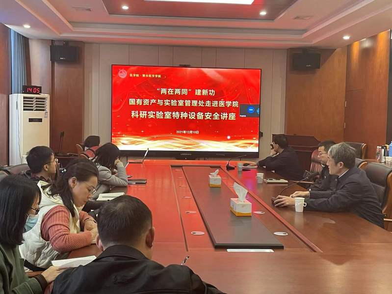 为进一步贯彻和落实公司实验室安全管理的要求,树立师生实验室安全红线意识,提高个人防护能力,12月10日下午,国有资产与实验室管理处和公司特邀南京市市场监督局特设处赵新荣处长莅临公司作实验室特种设备安全知识专题讲座。张军书记,部分实验室主任、安全员,各个课题组研究生代表参加了讲座。讲座由燕珂副书记、副经理主持。