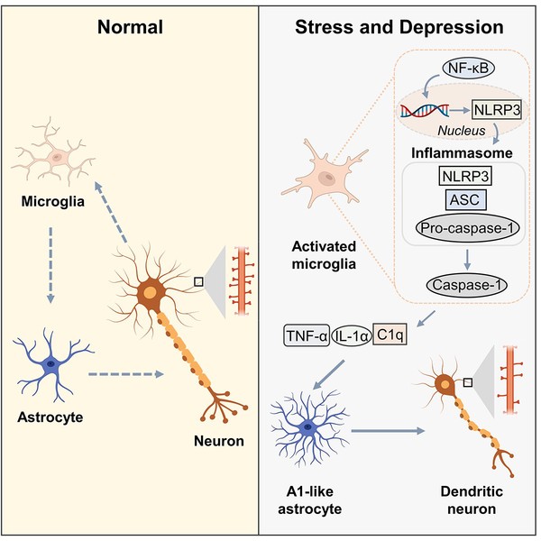 本研究揭示了小胶质细胞的NLRP3炎症小体在调控A1星形胶质细胞的激活及其神经毒性功能中的重要作用,为抑郁症的早期干预靶点提供了新的研发方向。