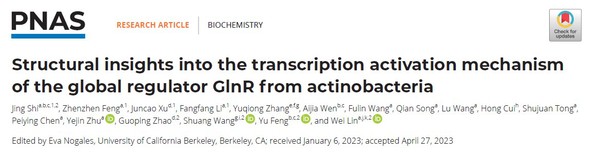 2023年5月23日,db真人体育官网﹒整合医学公司,附属鼓楼临床db真人体育官网林炜教授课题组和浙江大学冯钰教授团队、中国科公司分子植物卓越创新中心赵国屏院士团队以及中国科公司物理所王爽研究员团队在国际著名期刊美国科公司院刊PNAS上发表了题为Structural insights into the transcription activation mechanism of the global regulator GlnR from actinobacteria的研究成果。该研究捕获了结核分枝杆菌GlnR依赖型基因转录激活复合物结构,揭示了全局性转录调控蛋白GlnR选择性调控基因转录的分子机制,为全面认识结核分枝杆菌和整个放线菌的代谢调控机制奠定了基础。该工作是林炜教授团队继Mol. Cell(2017, 2018)、Nat Commun(2019)、Nucleic Acids Res(2020, 2021, 2022a, 2022b)之后在病原菌基因转录调控机制研究和新型抗耐药菌药物靶点发现领域取得的又一项全新研究成果。