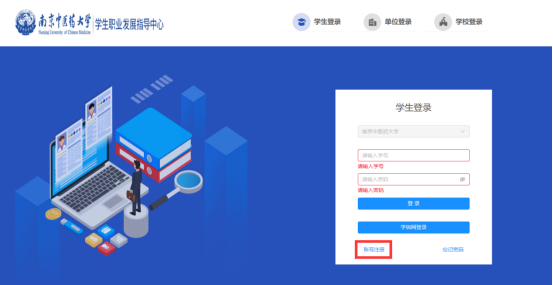 第一步:进入DB视讯就业信息网https://njucm.91job.org.cn/,点击员工登录,进入登录界面。