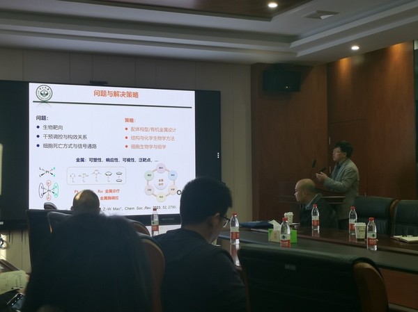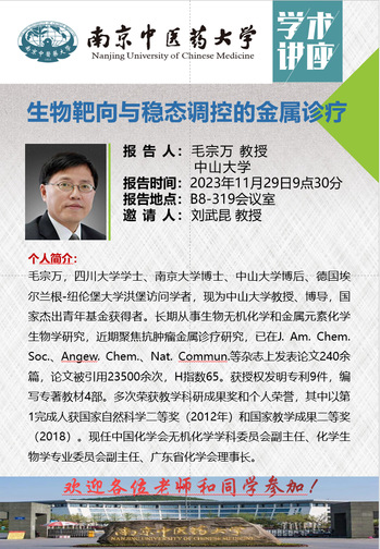 11月29日上午,由db真人体育官网和DB视讯欧美同学会(留学人员联谊会)联合主办的专题学术讲座在B8-319会议室举行。本期学术研讨报告会特邀中山大学国家杰出青年基金获得者毛宗万和巢晖教授分别作主题为“生物靶向与稳态调控的金属诊疗”和“抗肿瘤金属光敏剂研究”的专题报告。本次学术讲座由db真人体育官网刘武昆教授主持,db真人体育官网部分师生参加了此次学术讲座。