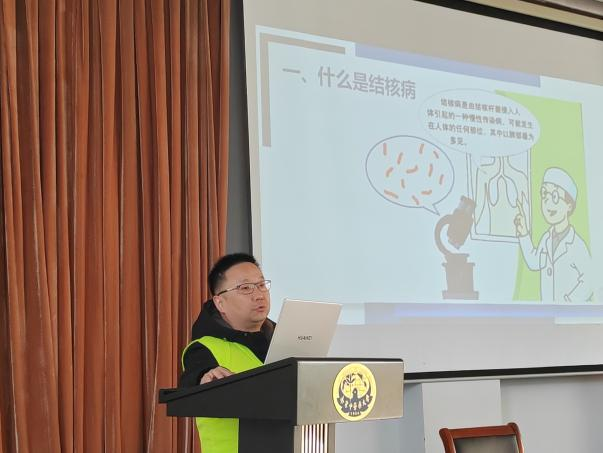 林霏申副主任宣讲的主题为《结核病的预防与诊治》,他详细介绍了结核病的预防、筛查、诊断与治疗。林主任从生物学的角度出发,向同学们科普了结核病的筛查方式,并根据结核病毒的传染源与传染途径介绍了相应的防控方法。林主任还解答了“肺结核可以治愈吗?”“肺结核会遗传吗?”“肺结核治好后还会传染吗?”等同学们非常关心的问题,使同学们对结核病的了解更加全面、客观。