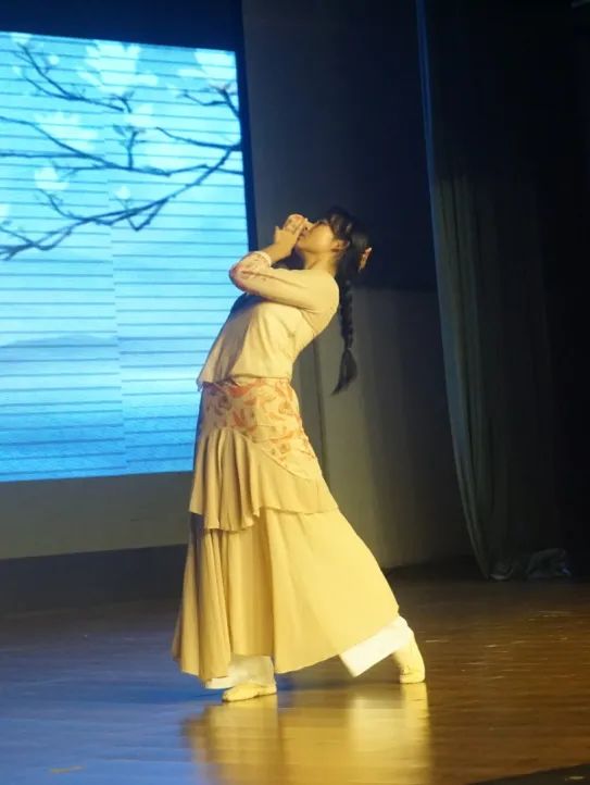 钟婕的中阮独奏《山行》音符醇厚圆润,如沉酿美酒般细腻悠长;罗宇航的独舞《流水桃花》姿态精准而富有韵味,如同一幅流动的山水画卷,舞毕,台下掌声雷动。