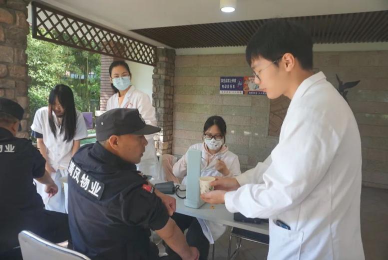 志愿者们早早地搭起服务摊位,摆好设备,身着整洁的白大褂,面带微笑,热情地接待每一位居民。他们组成了不同的小组,开展了测量血压、按摩推拿、泡制茶饮等多项专业服务。