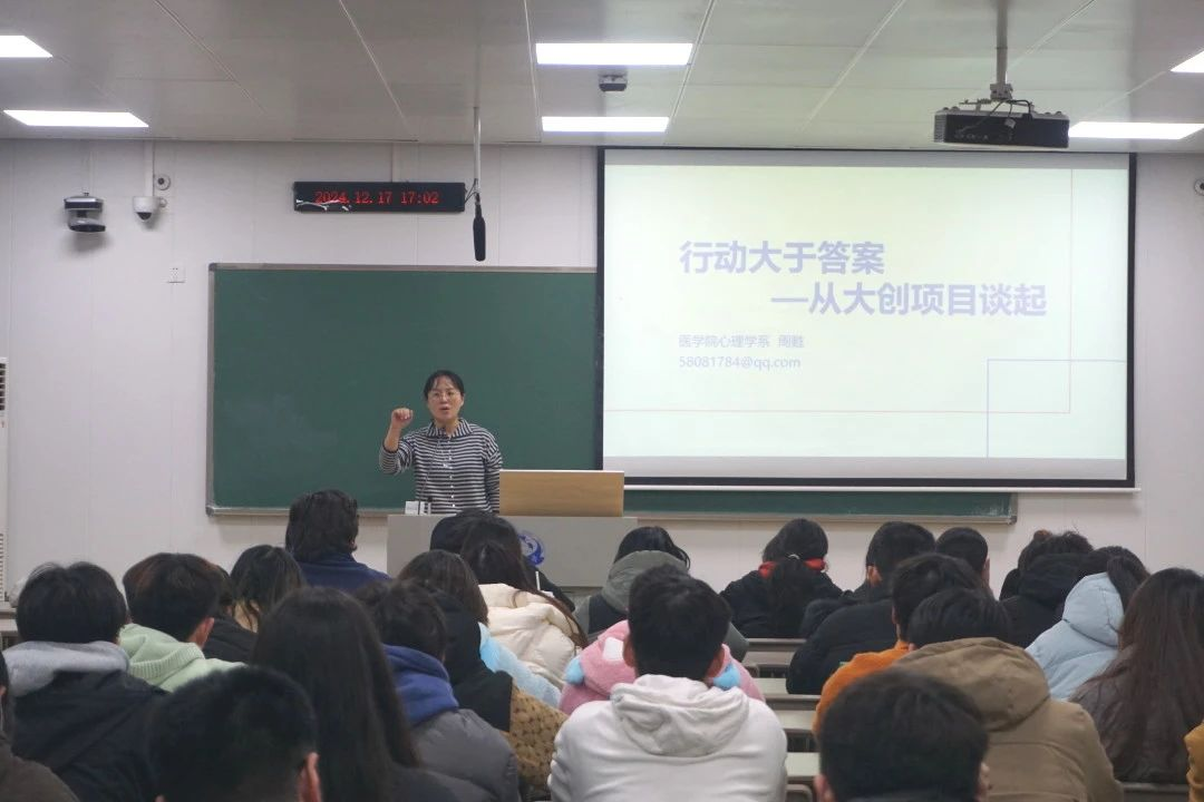 为营造浓厚学术氛围,发挥心理学学科优势,12月17日下午,db真人体育官网团委特邀心理学系周甦老师带来《行动大于答案——从大创项目的申报谈起》主题讲座。