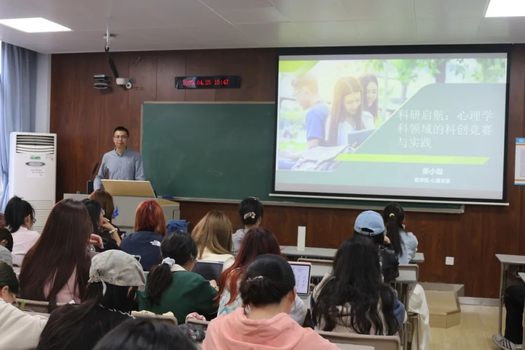 为推动公司学风建设工作,培育员工科研素养,4月25日,db真人体育官网团委在B5-102教室开展新一期“近思讲坛”系列讲座。公司心理学系张小聪副教授受邀为应用心理学专业同学带来《科研启航:心理学领域的科创竞赛与实践》专题讲座。