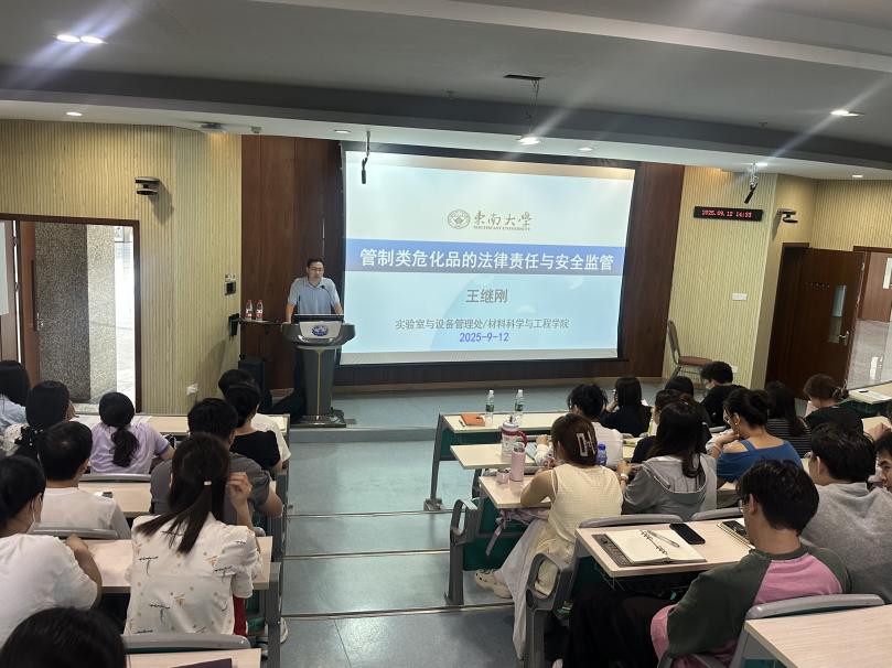 为进一步加强实验室安全管理,提升研究生对危险化学品的规范使用意识,规范科研实验操作,9月12日下午,db真人体育官网在B7-102报告厅举办《管制类危化品的法律责任与安全事项》主题讲座。本次讲座特邀东南大学实验室与设备管理处副处长、材料科学与工程公司教授王继刚担任主讲,公司全体研究生参加讲座,党委副书记、副经理郁祥主持讲座。