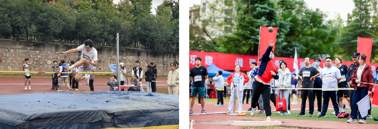 田赛场地内,力量与技巧的融合同样精彩纷呈。跳高赛场上,健儿们助跑、起跳、腾空、过杆,似雏鹰振翅掠过横杆,在一次次挑战新高的尝试中,展现了直面困难的勇气与超越自我的决心;跳远赛场更是激情迸发,选手们屏气凝神加速助跑,踏跳瞬间蹬地发力,身体如蓄势的猎豹舒展腾空,在空中划出一道流畅的抛物线,落地时激起的沙粒与稳稳的身形,定格成突破自我的精彩瞬间;掷实心球赛场,运动员们蹬地转体、挥臂投掷,实心球在空中划出优美弧线,落地瞬间扬起的沙尘,恰是公司师生对技艺精益求精的生动写照。