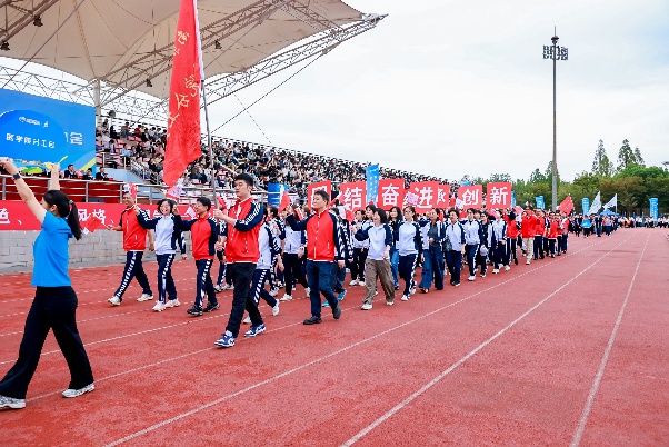 伴随着激昂的运动员进行曲,公司方阵踏着晨曦稳步入场。队员们身着统一服装,精神抖擞、步伐铿锵,响亮的口号响彻运动场,充分展现了公司师生的蓬勃朝气与昂扬斗志。