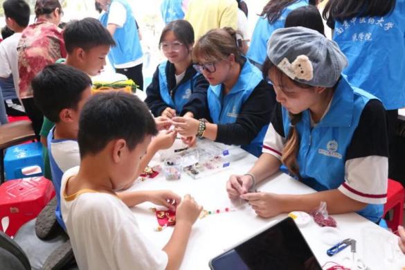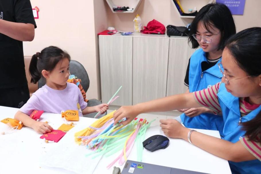 在制作过程中,志愿者们结合材料,用生动易懂的语言向孩子们讲解中医药知识,让孩子们在动手实践中直观感受中医药“源于自然、用于生活”的特点,激发他们对中医药文化的兴趣。