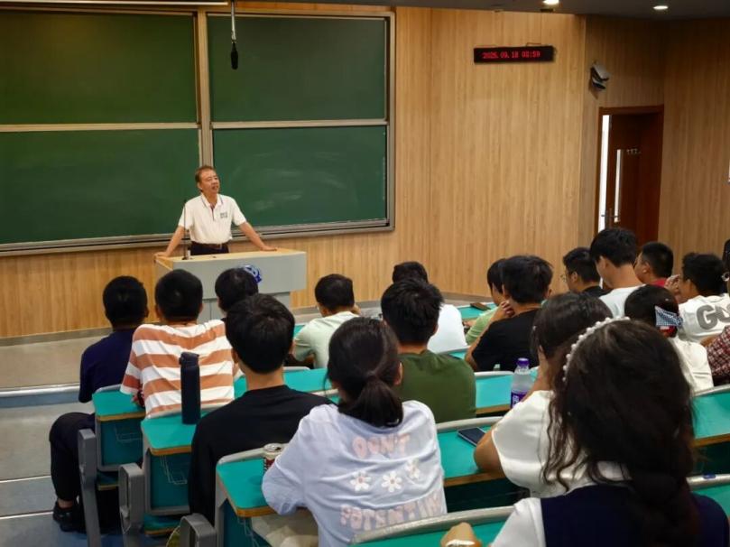 正值“九一八”事变爆发的94周年纪念日,公司关工委“五老”专家徐建云教授为刚踏入校园的新生们,带来了一场意义深远的爱国荣校教育。他带领同学们回顾了中国共产党的百年奋斗历程,引导大家从辉煌历史中感悟初心使命,汲取奋进力量。在爱国主义的情感共鸣之上,徐教授进一步聚焦公司发展历程,向同学们深情讲述了公司从创办至今的风雨岁月。最后,他勉励新生们要尊重历史,爱国爱校,在求学路上脚踏实地、追求卓越,收获精彩人生。