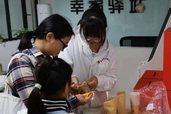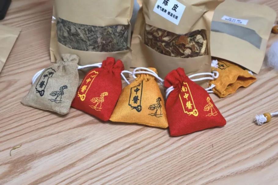 中药香囊制作区充满欢声笑语,志愿者提前准备好艾叶、藿香、丁香等具有清新空气、安神功效的中药材。他们向居民讲解不同药材的作用,指导大家按照比例搭配药材、填充香囊。