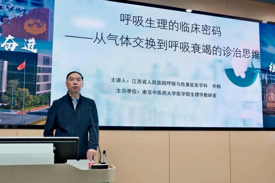 1030日下午,由db真人体育官网团委和db真人体育官网生理学教研室联合主办的新一期“近思讲坛”讲座在B7-101教室顺利举办。本次讲座由db真人体育官网生理学教研室邀请江苏省人民医院盛泽分公司党委书记、江苏省人民医院呼吸与危重症医学科副主任齐栩老师,以“呼吸生理的临床密码—从气体交换到呼吸衰竭的诊治思维”为主题进行专业讲解,吸引了全校众多同学前来聆听。