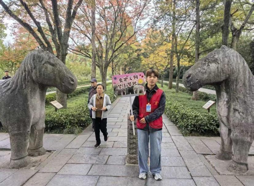 在明孝陵“最美600米石象路”的秋日胜景里,一群身着红马甲的身影成为了历史与文明的桥梁——他们是db真人体育官网青年志愿者协会的志愿者,正以行动践行着“守护文物、文明引导”的使命。
