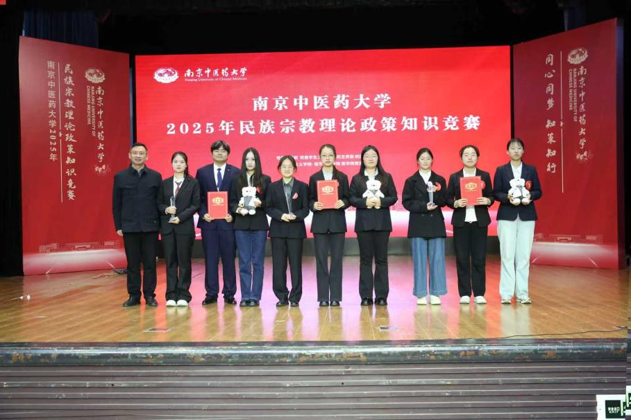 决赛现场设置必答题、抢答题、风险题等多个环节,题型设计兼顾理论深度与实践导向,内容紧扣党的民族理论政策、宗教工作方针法规。竞赛中,参赛队员沉着思考、踊跃作答,展现出扎实的理论功底,彰显了良好的团队协作精神,赢得现场观众的阵阵掌声,充分展现了南中医青年学子的理论素养与精神风貌。最终,养老服务与管理公司荣获特等奖,人工智能与信息技术公司、泰州校区荣获一等奖,中db真人体育官网、针灸推拿公司·养生康复公司、db真人体育官网荣获二等奖,其余未进入决赛的参赛队伍荣获三等奖。